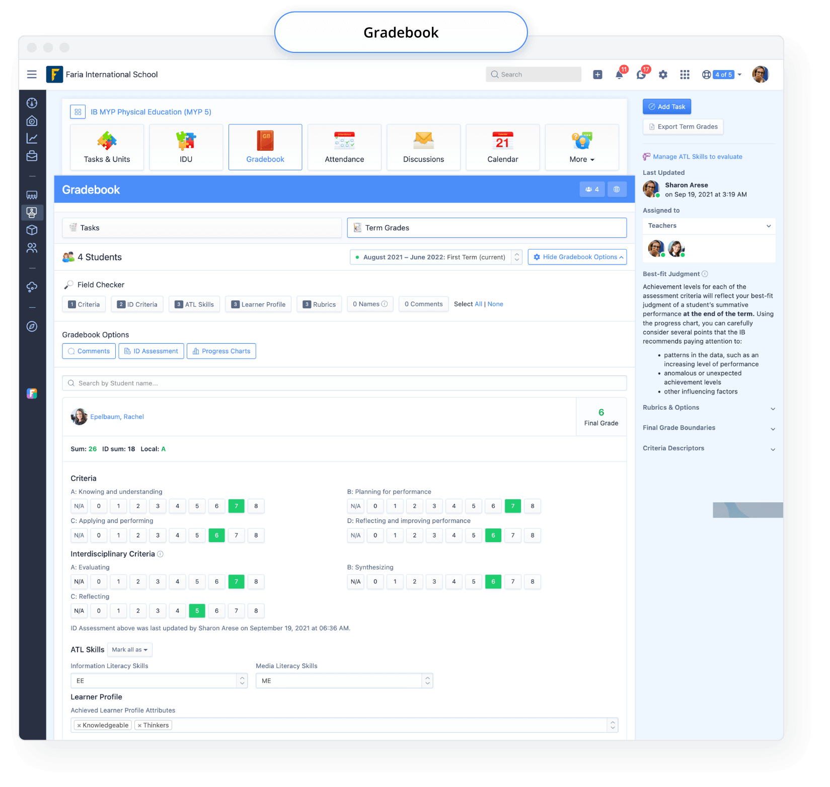 Chris agrees: “If you philosophically align yourself with a criteria-based grading system, ManageBac+ makes that job so easy – the way those rubrics are built in. That’s something I would hear from our Middle School teachers super often – that grading is a breeze, it’s so easy to manage.”