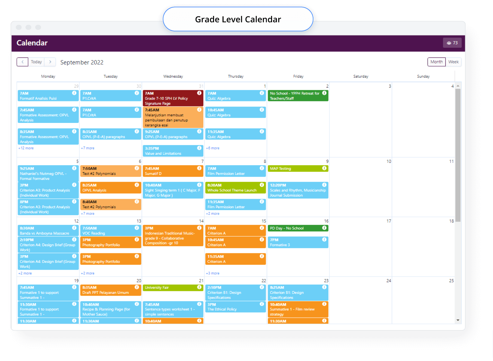When it comes to day-to-day learning, summative assessments are one of the key activities the school uses ManageBac+ to organise. Teachers are required to post summative assessments, while formative ones are optional. The school made the decision to colour-code summative and formative assessments, enabling students, parents, teachers and administrative staff to easily look at the calendar and see at a glance how many tasks students have in a given day or week. “This means we can make sure students aren’t getting overwhelmed with too many summatives,” David explains.