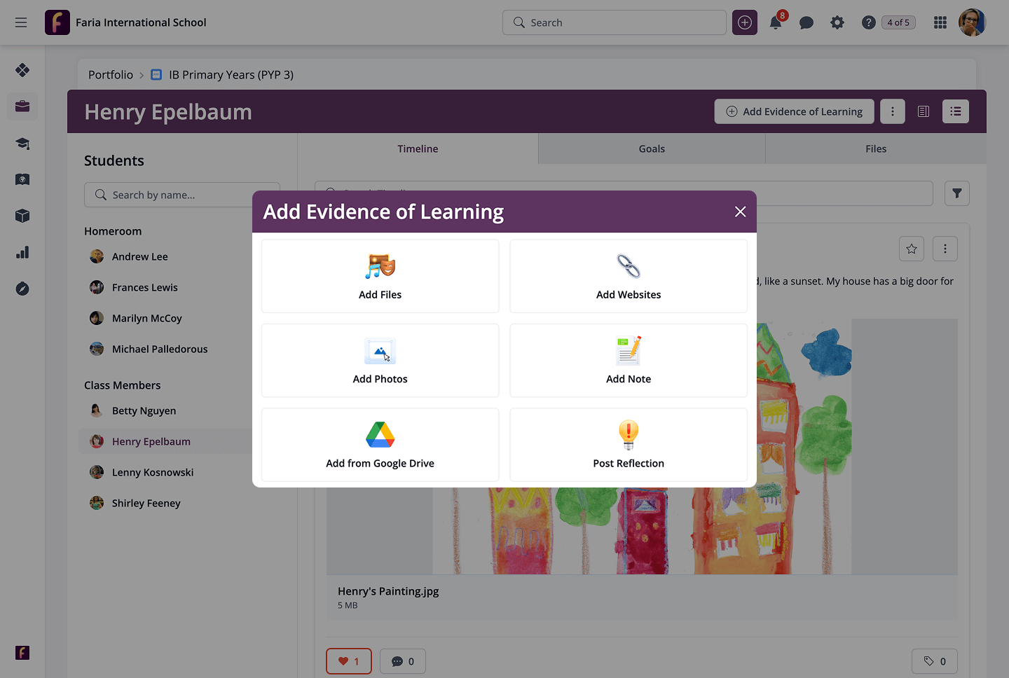 The updated Evidence previews streamline the exploration of student work. Photos, videos, notes and websites are now presented in a more visual and interactive way, making it simple for students, parents and teachers to connect with key moments and milestones.