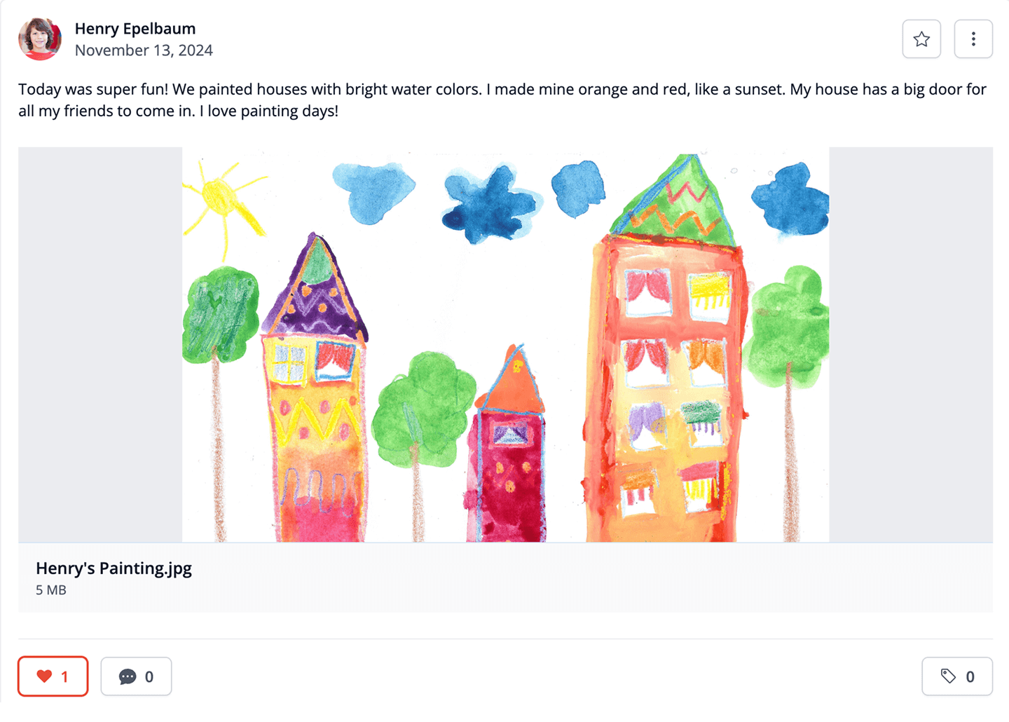 A full-size image preview is displayed directly on the student’s Portfolio, with straightforwad download and sharing options.
