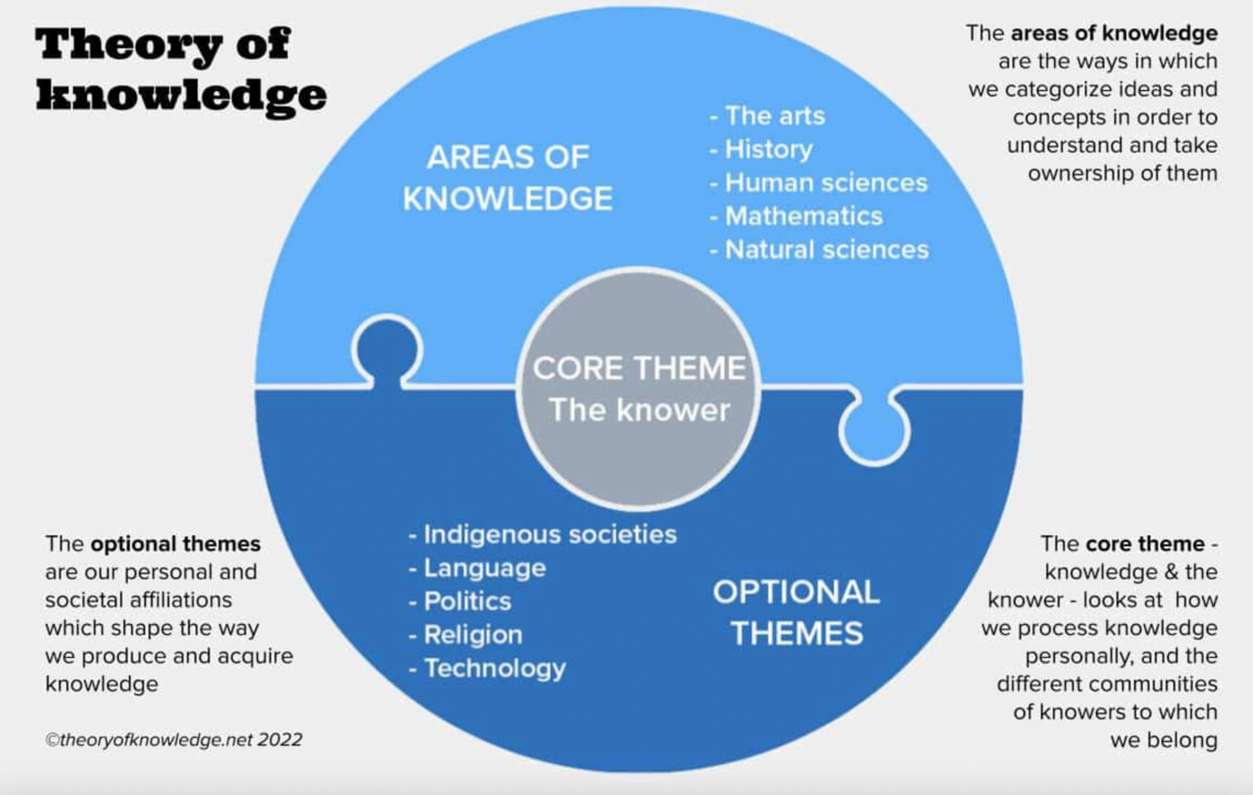 The TOK course consists of three interlinked elements: the core theme, the areas of knowledge, and the optional themes.