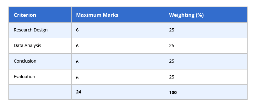 The internal assessment's essence has not changed; it is still a 10-hour project that accounts for 24% of the student’s final grade. The criteria, though, have changed, and a 3,200-word limit has been added (note that this is slightly higher than Biology, Chemistry, and Physics). The most significant changes are removing personal engagement and communication and dividing the conclusion and evaluation criteria. They now have individual criteria. This is because the conclusion and evaluation will now account for more of the student’s overall grade. Again, there is a difference here between the other sciences. SEHS has an additional descriptor about the implications of the findings on real-world examples. A simple example could be that we found a difference in 100m sprint times of 0.001 seconds, which is unlikely to have any significant effect on the performance of athletes within a game of association football. The new SEHS Internal Assessment criteria are highlighted below: